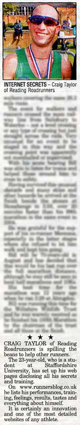 Rob said something quite interesting tonight. He reckons my problem doing this sort of stuff isn't leg-speed in itself (a 66 second 400m suggests otherwise), but it may be in relaxation at speed, as I look really 'up tight' doing this sort of session. If I could get more relaxed at speed, I may be able to hold a faster speed for longer. I'm going to ask Martin for some advice on this, because I hope it is as simple as that.